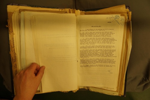 Admiral Servaes asked what would be the effect of fitting 3 triple 15‘’ turrets instead of 3 triple 16‘’ in design. I said the reduction in displacement may be of the order of 4000 tons but that this was only a rough guess.The Iowa was mentioned again and the story trotted out that that she obtained 33 knots deep on trial. I said I thought this had already been scotched but that I would ask you to bring up the trail results of a ship of the class.There was some discussion about the effect of near miss bombs on design X. Admiral Servaes would like to know whether the protection provided would stand up to (a)2000 lb. bomb at 10‘ from ship’s side,(b)2000 bomb at 20‘ .Discussion was resumed on design X and Admiral Servaes would like to know the approximate size and displacement of what he termed ‘ an improved design X,with the following characteristics:-