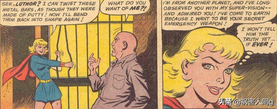 莱斯拉.拉尔发明了一种射线装置,被射线射中就能够剥夺卡拉的能力,然后她将卡拉放入坎多城,自己则成为超级女孩,唯一发觉真相的是超人的宠物狗小氪。