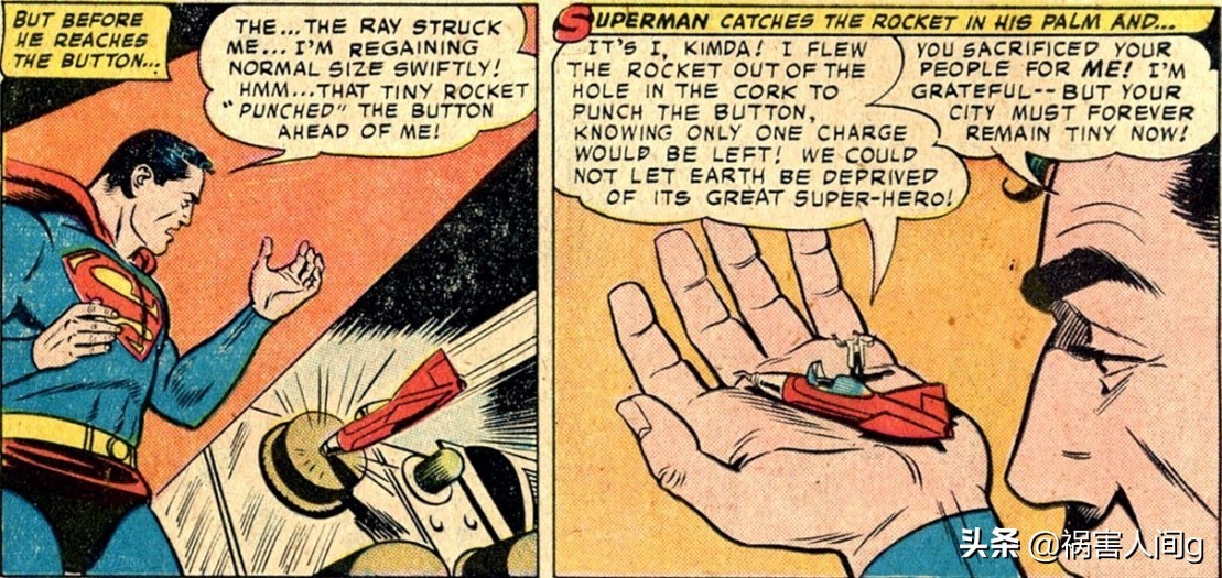 在超人准备恢复坎多城时,金达教授开启了装置将超人恢复了原状,他不想让超人牺牲自己来拯救坎多城。