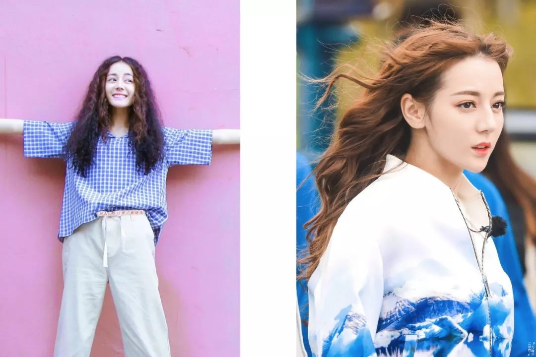 迪丽热巴左面这张图为羊毛卷,右边则是泡面头。
