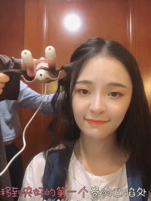 用超级细的卷棒,夹出羊毛卷的刘海儿。