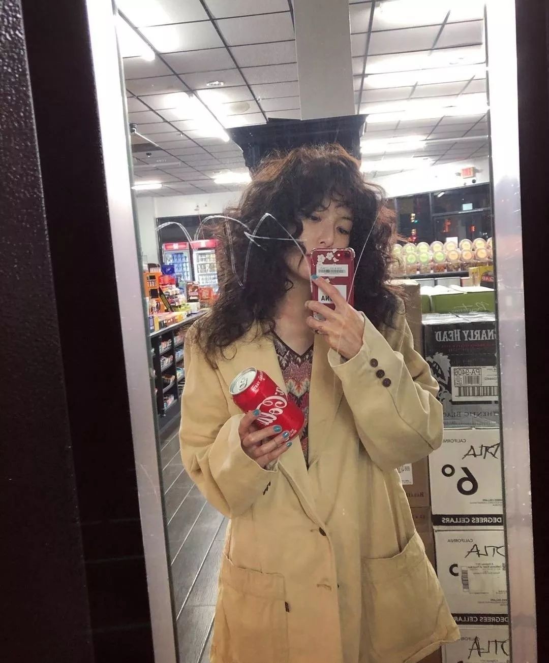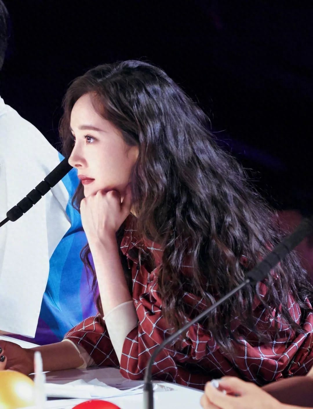 宋妍霏同样是选择了大地色系的眼妆,以及深红色的唇膏作为搭配。很轻松就能hold住泡面头。