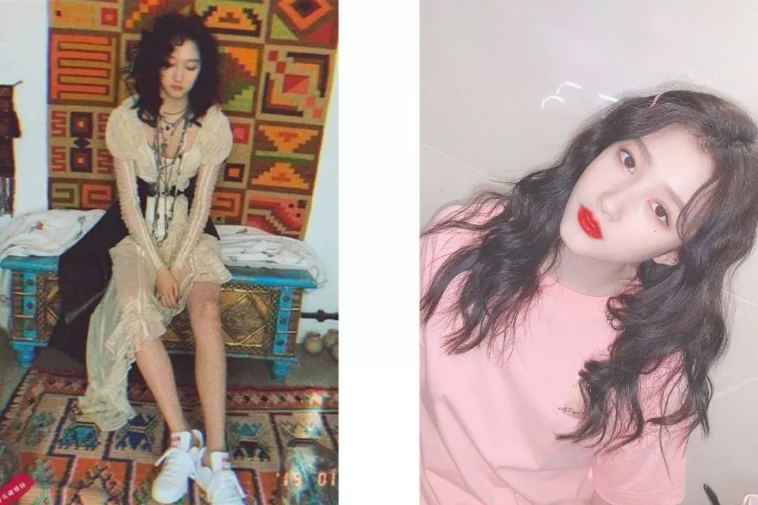 关晓彤左面为羊毛卷,右边为泡面头。羊毛卷很适合拍照凹造型,但不适合日常生活中,泡面头则比较日常。