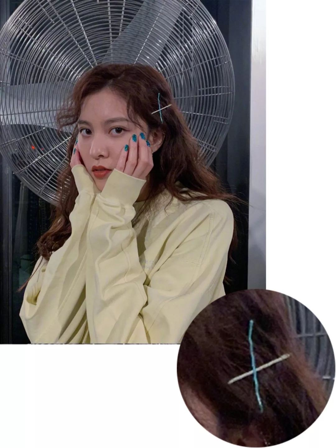 宋妍霏的彩色小卡子也是超级可爱的选择!把你收藏已久的发饰全都拿出来吧!没有泡面头驾驭不了的发饰哦!