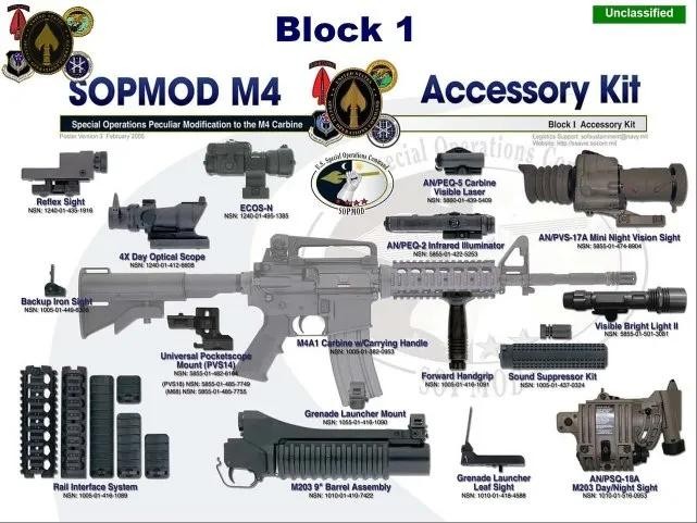 M4卡宾枪的一个模块化系统,拥有大量战术配件