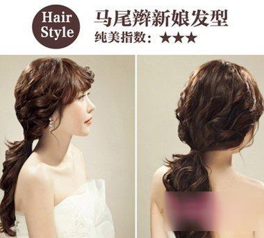 新娘中长卷发头顶蓬松马尾扎发设计