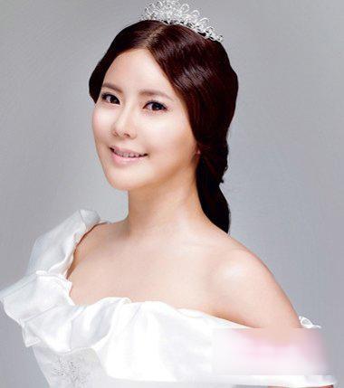 圆脸新娘斜刘海高盘发发型