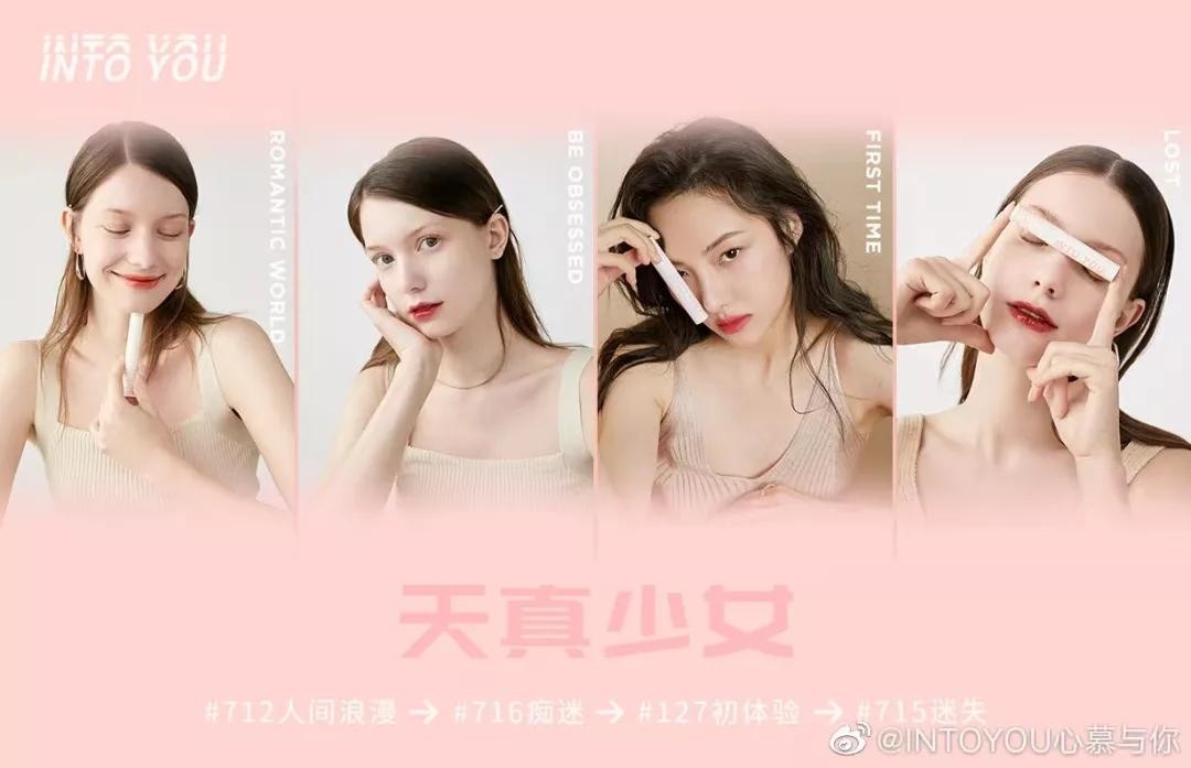 「INTO YOU」 不单是让这些博主简单的拍一些试色视频或者开箱礼物,而是直接选用博主作为产品模特,「INTO YOU」后面的模特也大多有一定粉丝基础。