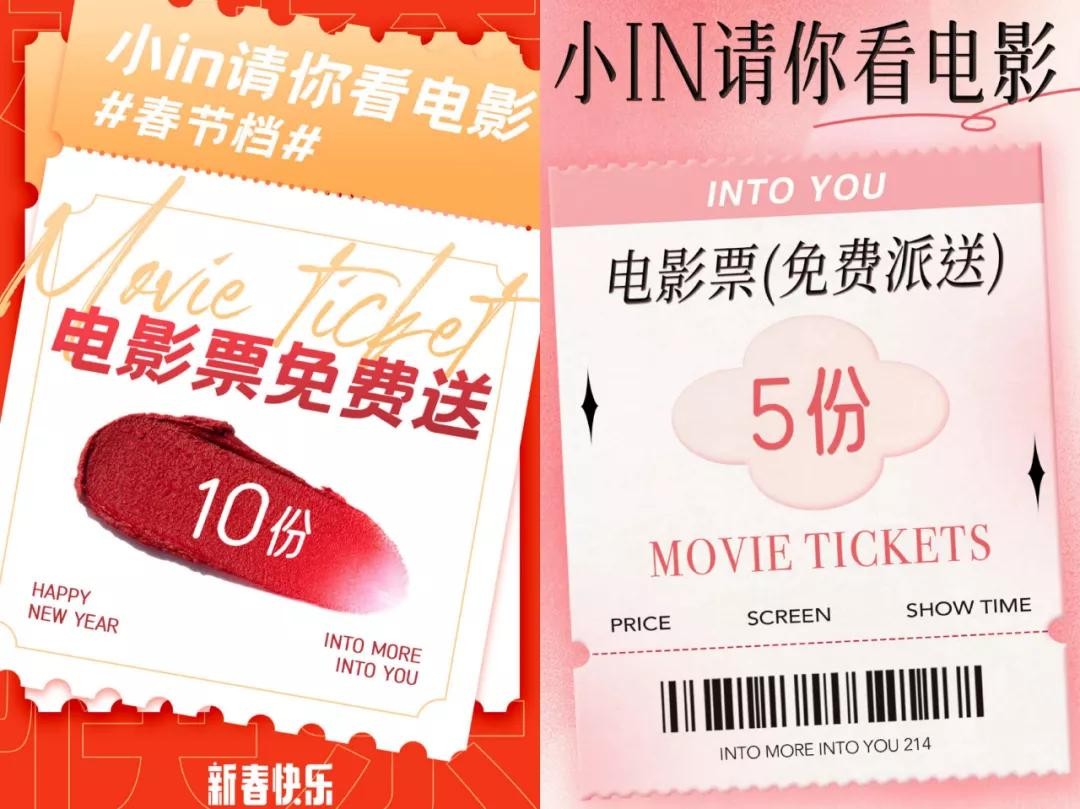 比如,大家普遍反映 2022 春节档电影价格超出往年较多,于是「INTO YOU」发起了“小 IN 请你看电影”抽奖活动,关注官方账号并转发指定微博有机会在情人节当天获得 2 张 100 元代金券。#春节电影