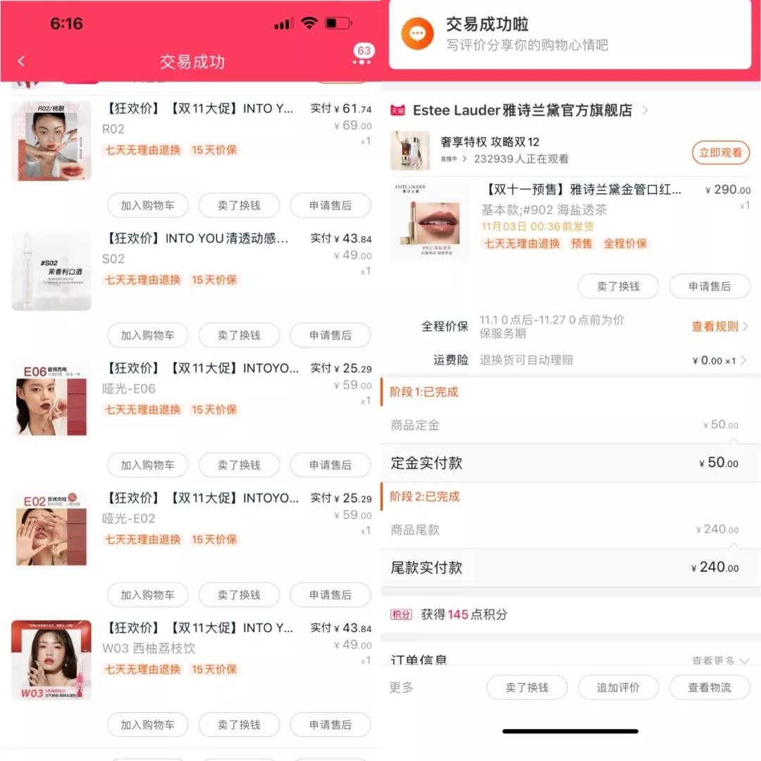 笔者双十一买了 5 只「INTO YOU」仅花费 200 元,作为对比一只雅诗兰黛 290……