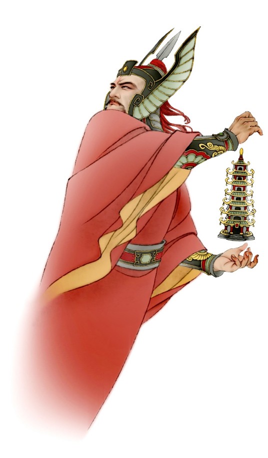 李靖,号托塔天王,中国古代神话传说的军神,分别由佛教中的武财神“财宝天王”与隋唐名将结合演变而成,是佛道儒并尊的国祭神,信仰成唐盛宋。