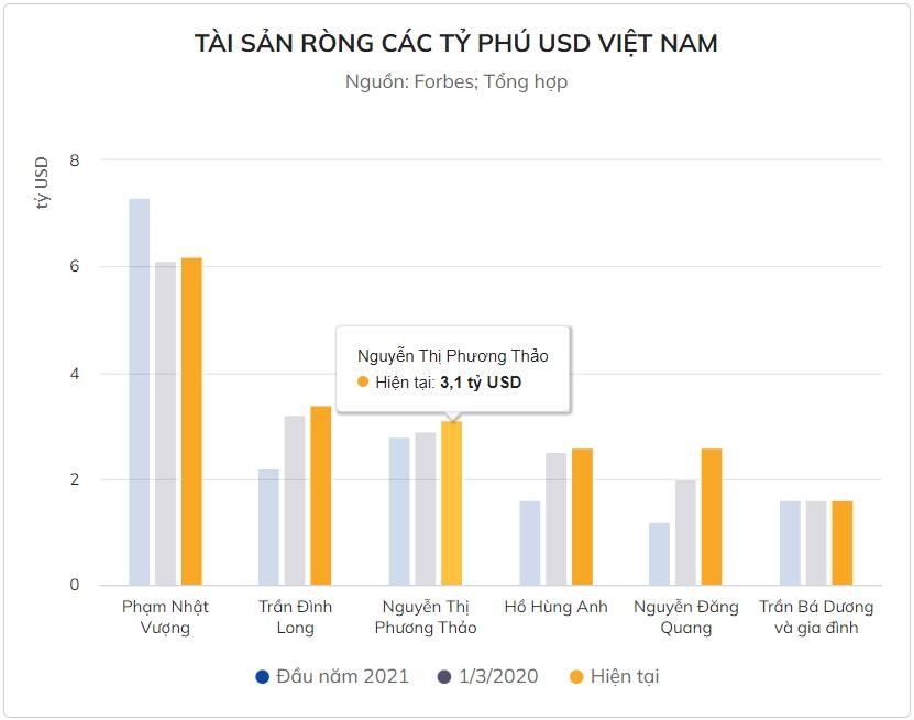 据最新数据统计(截止至2022年3月4日),目前阮氏芳草以31亿美元的身家位居越南富豪榜第三,也是唯一一位上榜的女富豪