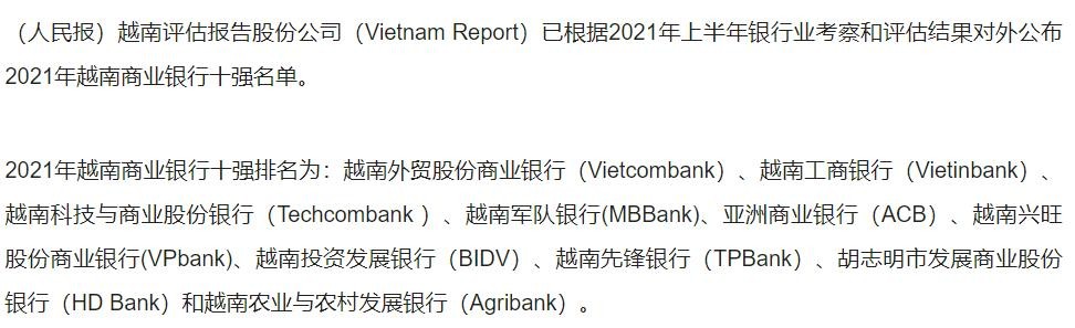 成立了越南科技与商业股份银行(Techcombank)和越南外贸股份商业银行(VIB),这两家银行是越南最早的2家私人银行,而这2家银行在2021年被越南被越南评估报告股份公司(Vietnam Report)与新闻网《VietnamNet》联合公布的越南利润最高企业500强榜单选入top10 。