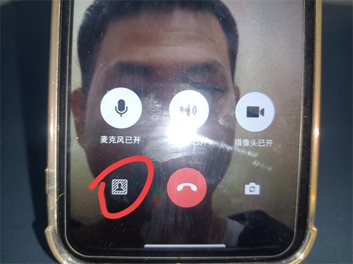 同样的方法,视频接通后按住手机顶部右上角向下滑就能看到,如果显示无效果,那么我们可以再点进去(如上图所示)