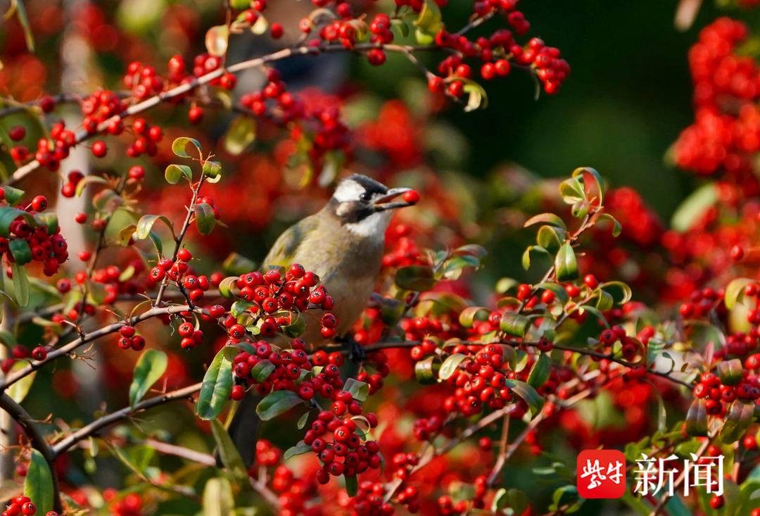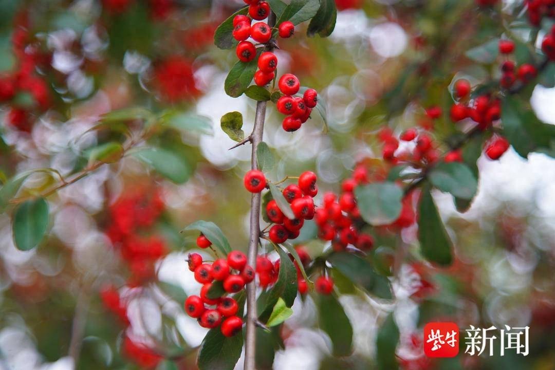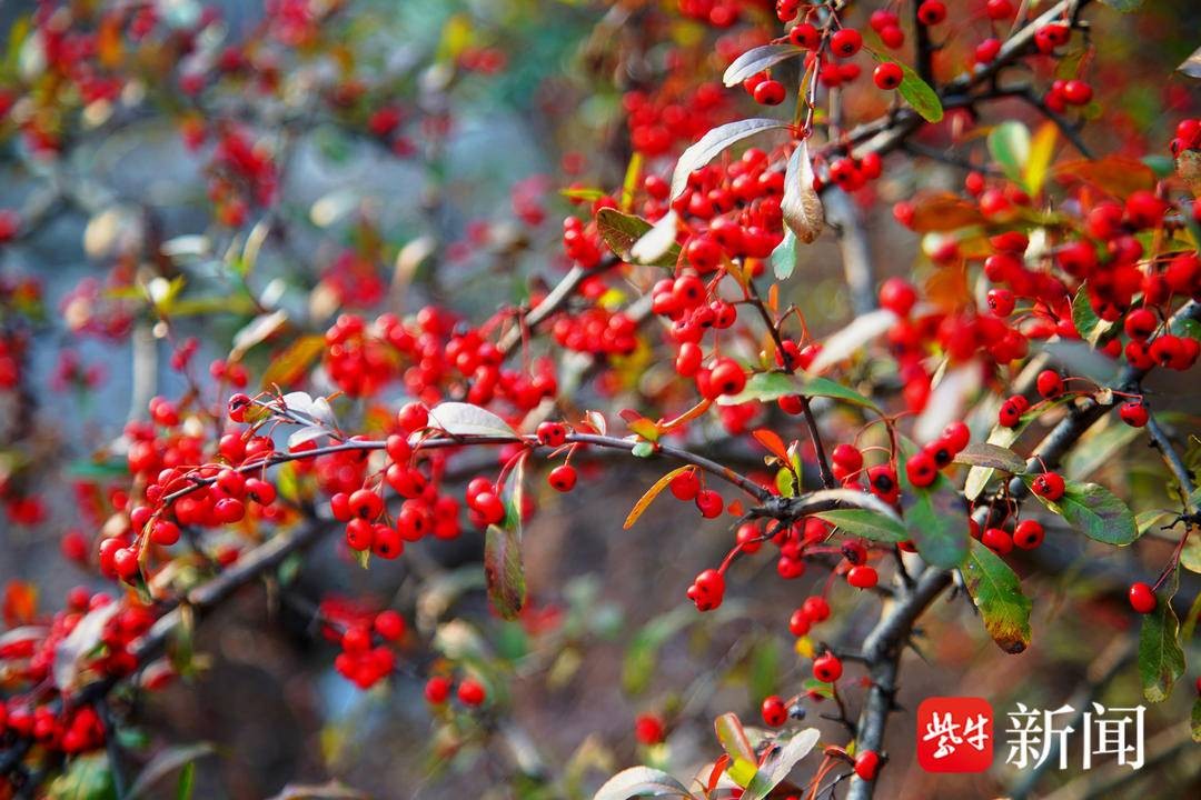 “初冬节气,火棘果是幕府山上的植物‘明星’,还招引了不少鸟儿前来觅食。”前来幕府山散步的市民惊喜地说。据当地的绿化工人季先生介绍,火棘是蔷薇科常绿或半常绿灌木,是一种极好的春季看花、冬季观果植物。而幕府山红彤彤的火棘果,让人在寒冷的天里有一种温暖的感觉。