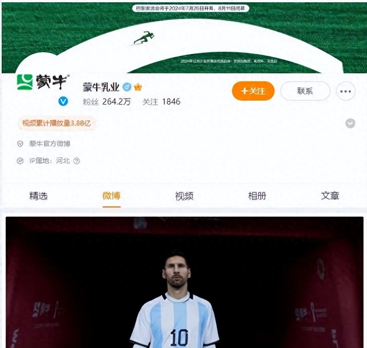 梅西仍为蒙牛代言人,官微精选评论引发关注