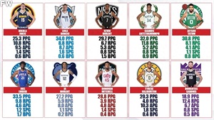 2022-23赛季,效力布鲁克林篮网的杜兰特,打出了场均29.7分,6.7个篮板,5.3次助攻,0.8次抢断,1.5次盖帽的表现。可惜杜兰特在上场对阵热火的比赛中受伤,接下来他的排名可能会下降,但是他绝对有资格排名前三名,因为最近他带领篮网险些登顶联盟第一名。