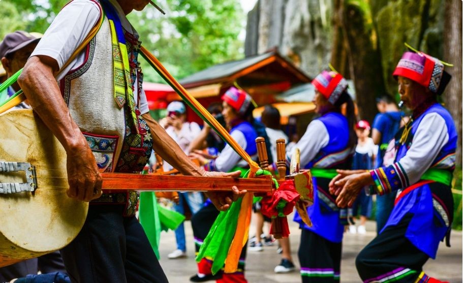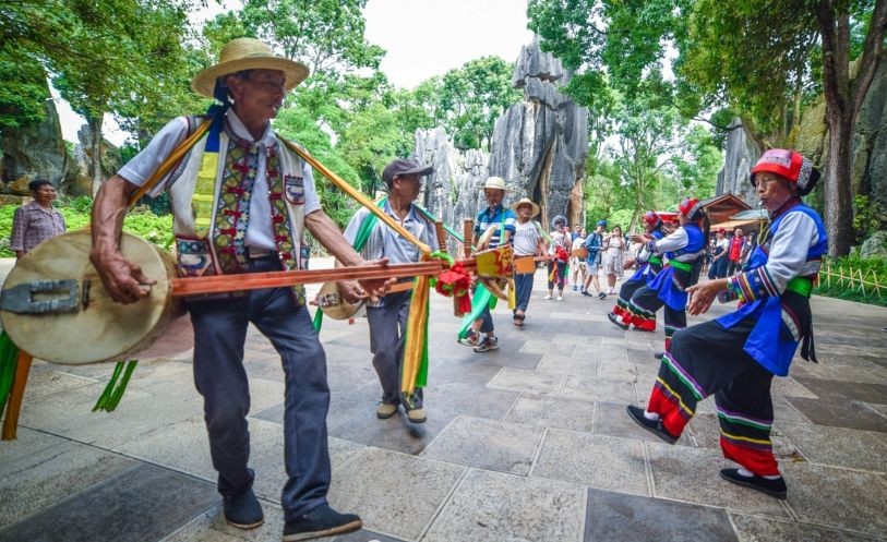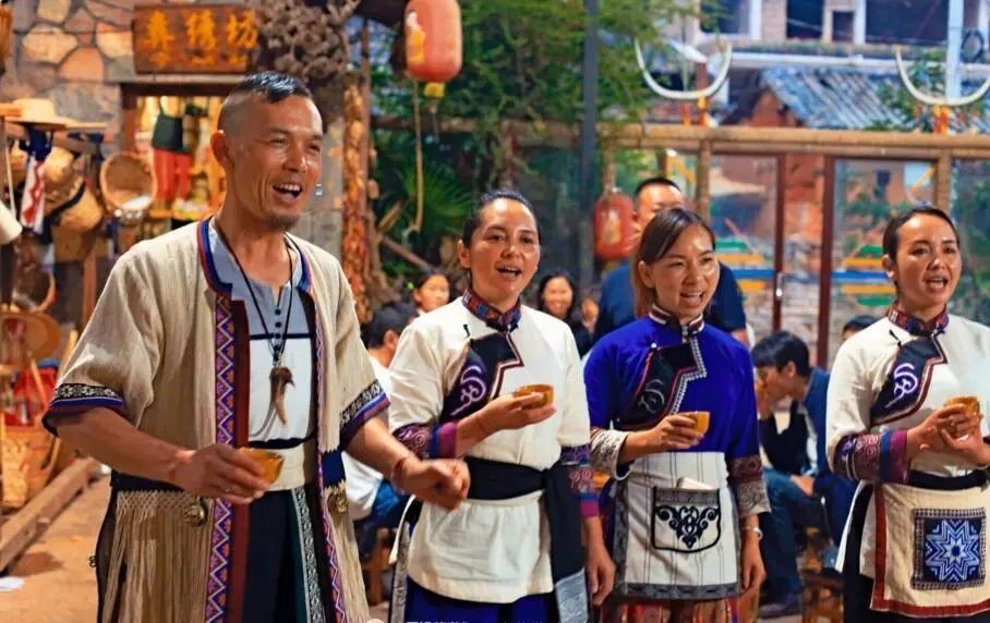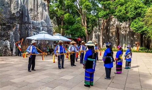 淳朴的撒尼人热情好客,每当远方贵客到来时,撒尼人便会弹起大三弦、唱起祝酒歌,用古朴的仪式迎接远来的贵客。
