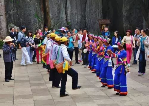 这样一曲欢快热烈的歌曲,吸引了众多的海内外游客前来领略石林的魅力。而撒尼人的热情和独特的民族习俗,斑斓绚丽的服饰彩绣,风姿豪放的民间歌舞,内涵丰富的诗文传说,古朴粗犷的摔跤竞技、斗牛斗羊的传统风采,更是让客人们惊叹、流连。