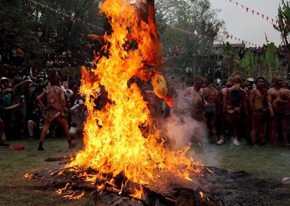 火把节被誉为“东方狂欢节”,一般历时三天三夜。第一天男人们忙着杀猪宰羊,妇女忙着做荞耙糕点,准备祭祀材料;第二三天则举办斗牛、赛马、摔跤、射击、赛歌、赛衣等精彩纷呈的传统项目。