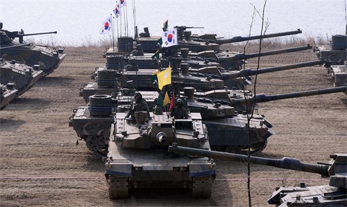 我们前面说过韩国陆军拥有42万人,而这42万人一共装备了主战坦克2600多辆,以及4000多辆的装甲战车,而且这些装甲战车都是韩国自产的K1、K2两种型号,威力不弱。