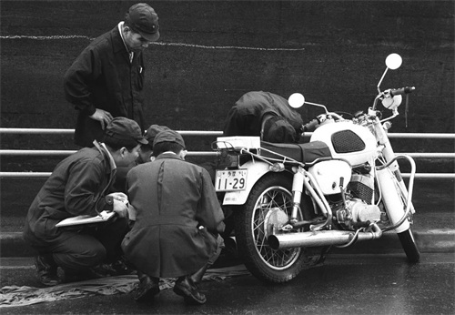 当时日本日本警察的摩托车都是白色的本田牌摩托车,而眼前这辆虽说也是白色的,然而却不是本田牌的,而是雅马哈牌的。原车身为蓝色。