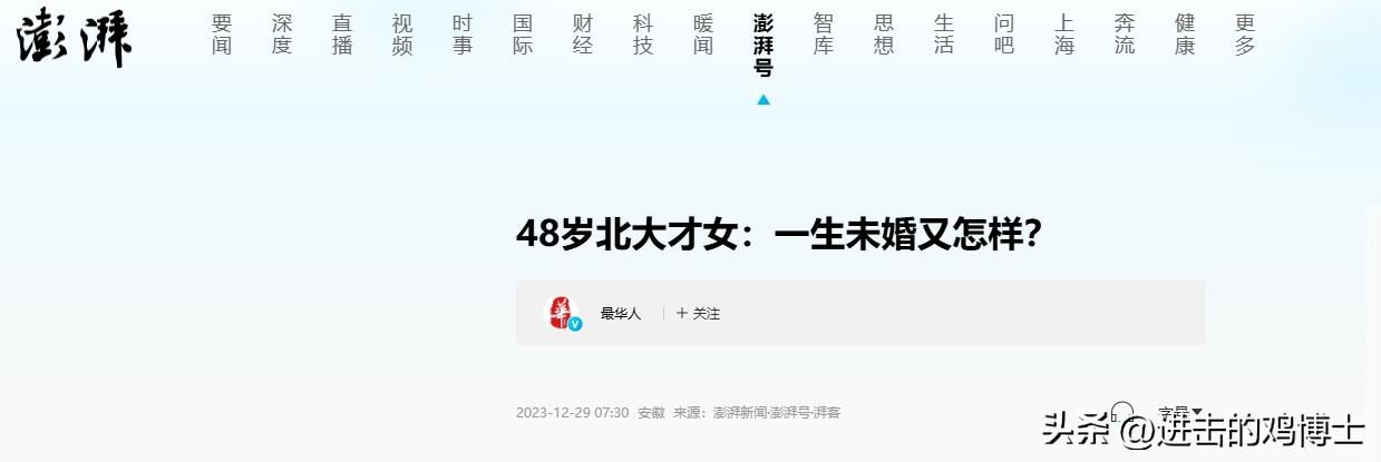 信息来源:2023-12-29澎湃新闻《48岁北大才女:一生未婚又怎样?》