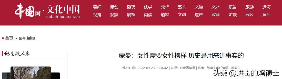 信息来源:2022-09-23北京青年报《蒙曼:女性需要女性榜样 历史是用来讲事实的》