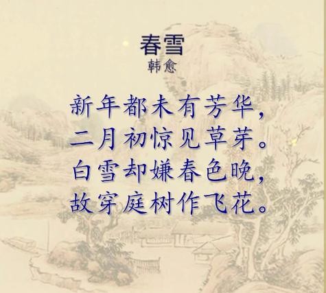❄️在韩愈的《春雪》中,诗人巧妙地运用春雪化作飞花的意象,绘制了一幅大自然壮丽景色的图卷。这不仅仅是一场雪的降临,更是春天来临的预兆,象征着生命的更新与复苏。通过这样的描绘,韩愈寄寓了深深的向往——对于大自然无尽奇迹的赞叹,以及对新生活的期待。春雪如飞花,轻盈洁白,给沉睡的大地披上了新装,预示着万物即将苏醒,带来生机与活力。这首诗不仅赋予了春雪以美的形象,更深刻表达了诗人对于季节更替中,生命循环和自然更迭的哲思和期盼。