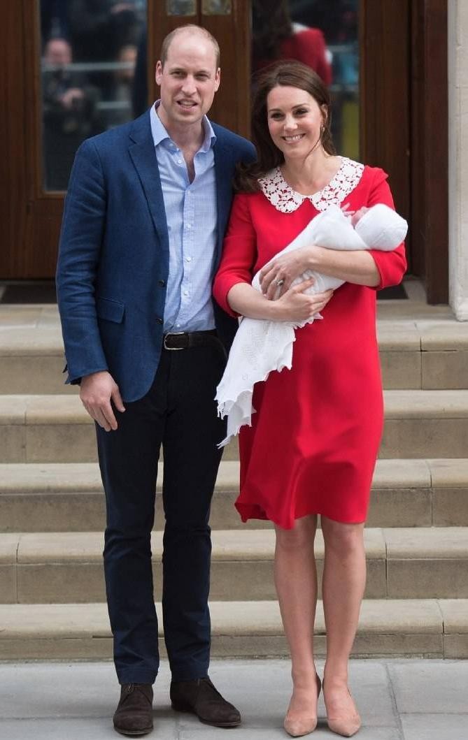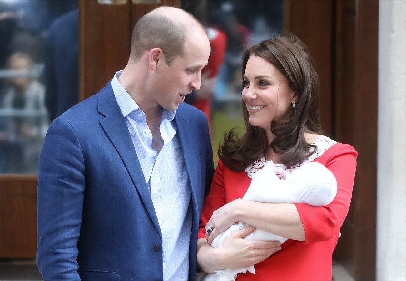 当时,幸福又自豪的凯特穿了一条红色带白色蕾丝花边领的连衣裙,手里抱着刚刚出生几个小时、被裹得严严实实的路易王子。威廉则是身穿皇家蓝西装搭配浅色衬衫,和妻子一样,脸上也挂着喜悦又满足的笑容。一家三口相亲相爱的画面看上去真是幸福又美满。
