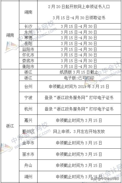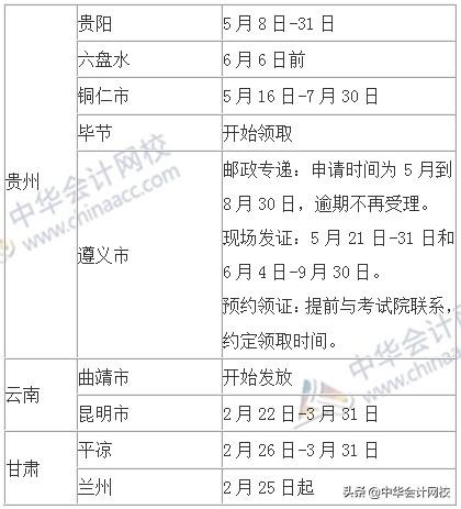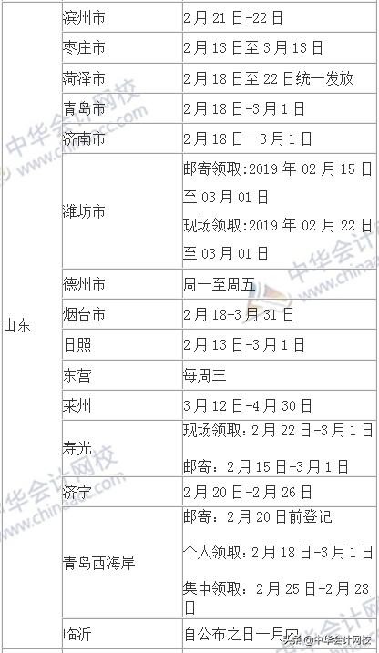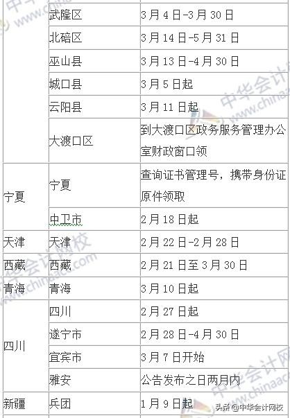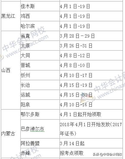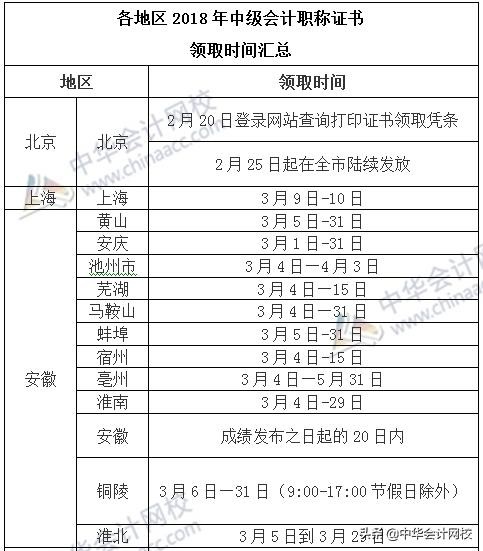 各地区2018年中级会计证书