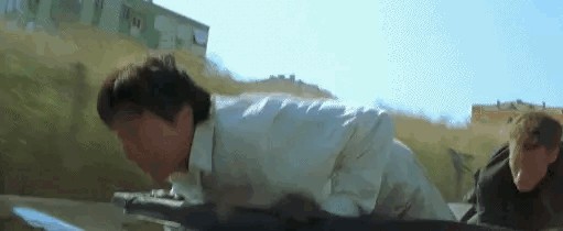 最严重两次一是拍《飞鹰计划》时,在地下基地开抽风扇一幕,风扇一扯,整个人撞上扇叶,马上昏过去。