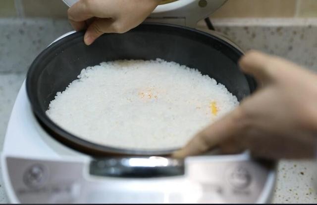 6、不用放水,盖盖子,点开煮饭键,等到灯跳了,美味就大功告成了。