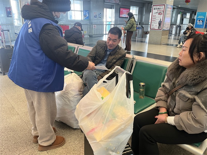 青岛市城阳区汽车北站开展“文明交通 你我同行”春节垃圾分类主题宣传活动
