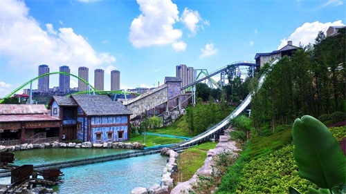 重庆欢乐谷占地面积约60万平方米,由阳光海岸、飓风湾、欢乐时光、河谷传奇、飞越极限和老重庆六大主题区组成,拥有超过200项游乐设施和表演项目。