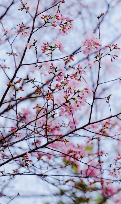 樱花象征纯洁、高尚,花期较短,且落花姿态优美,有瑰奇绚烂之美,从而令古代许多文人墨客留下了无数关于樱花的不朽诗章,“樱花落尽阶前月,象床愁倚薰笼。远似去年今日,恨还同。”