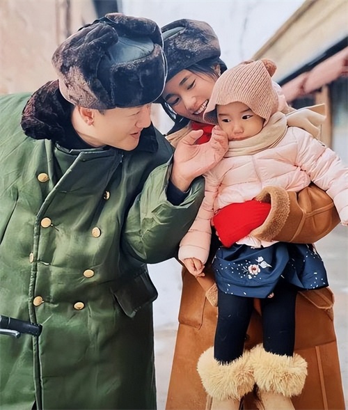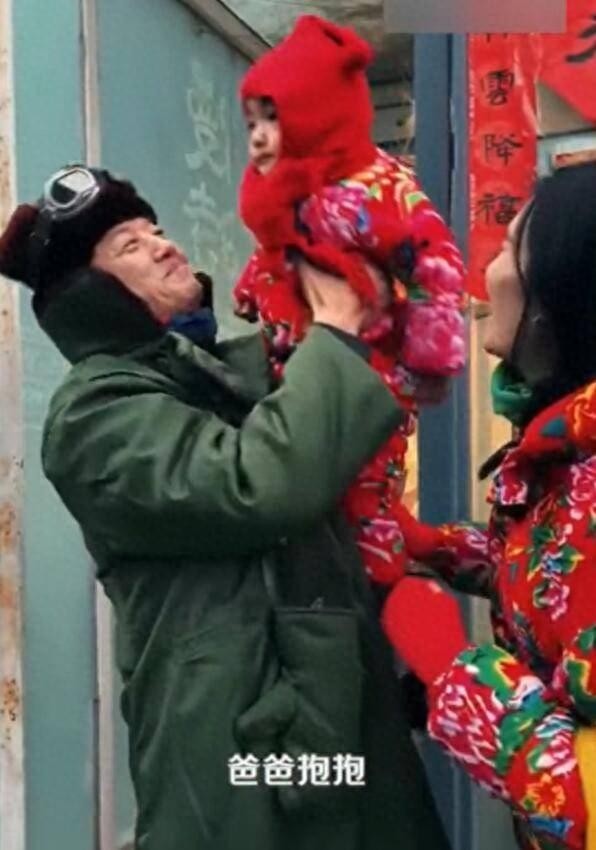 李亚鹏身穿军大衣,海哈金喜和女儿穿着大花袄,这样的装扮更添喜庆氛围。画面中,李亚鹏从妻子手中接过女儿,一家三口紧密相拥,流露出浓厚的幸福感。这不仅仅是一家人共同迎接新年的瞬间,更是对家庭温馨的真挚展现。