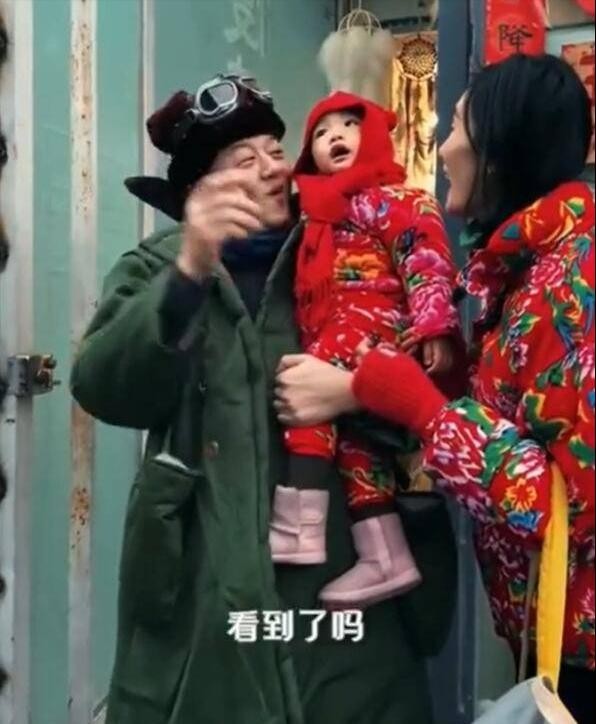 发起了一个浪漫的邀请,共同迎接新年的来临。妻子海哈金喜身穿大花棉袄,扎着两个小辫,显得十分可爱。而女儿则同样穿着花棉袄,被妈妈放到爸爸怀里,发出奶声奶气的呼喊,“妈妈”两个字传达着无限的亲情。