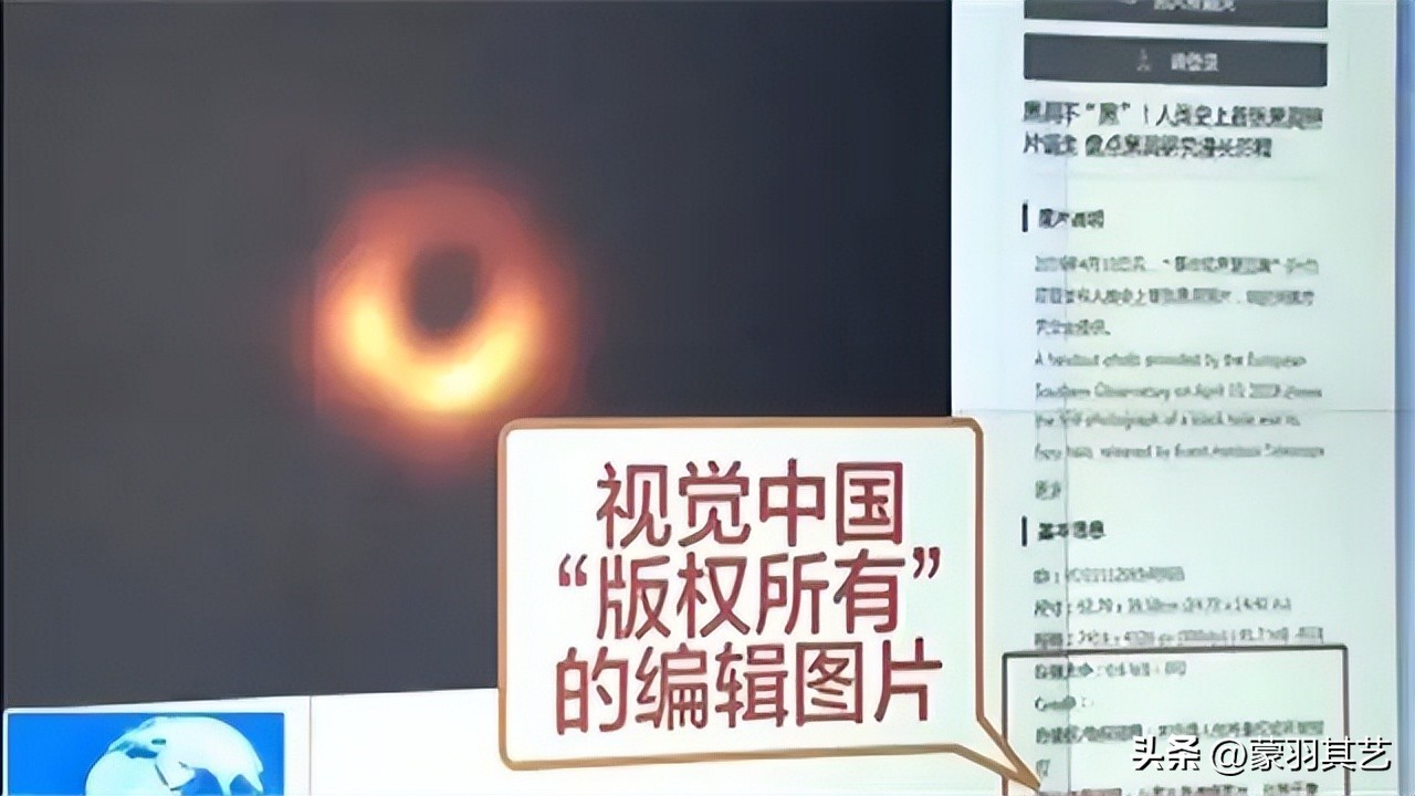 2019年4月10,人类首张黑洞照片问世,转天,就被视觉中国打上了版权烙印。