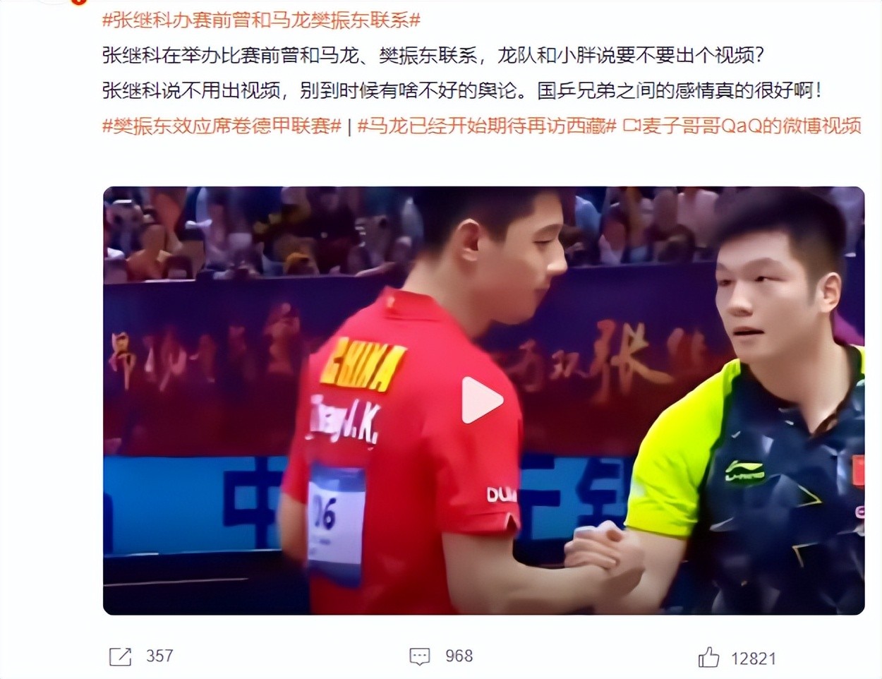 除了这个老教练的站台,曾经的好兄弟马龙和樊振东也为兄弟撑腰了。