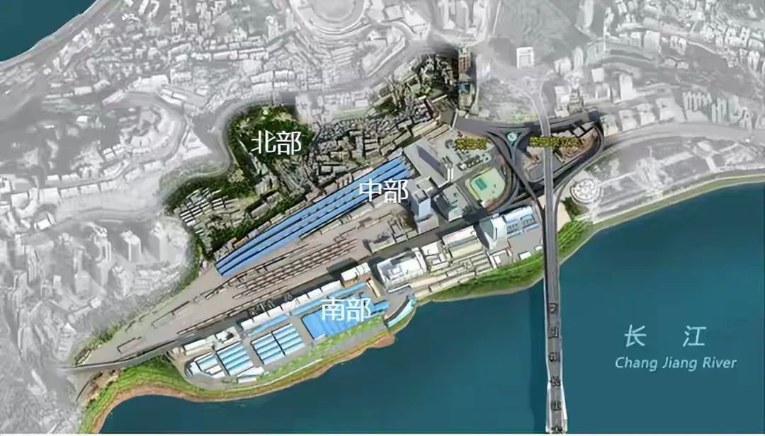“由于铁路在中间又必须保留,与其不设站浪费空间,或者变成一个四等站影响重庆形象,还不如做成重庆的城市名片,站城融合,高铁、公交化通勤铁路、地铁18、26、27三线融合,还可以换乘邮轮。”