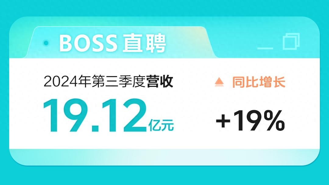 12月11日美股盘前,BOSS直聘(NASDAQ:BZ,HK:2076)发布了2024年第三季度财报。财报显示,公司营收、利润等指标稳健增长。第三季度公司取得营收19.12亿元,同比增长19%。报告期内,公司净利润为4.64亿元。非通用会计准则下,公司经调整后营业利润达到6.05亿元,经调整后营业利润率超过30%。