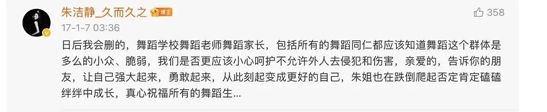 朱洁静不仅有魄力还很正直,在她还没成名的时候,看到有舞蹈生摄影师利用小朋友拍擦边球作品,姐姐是第一个站出来发声的人,却被摄影师连名带姓骂了20多条,她始终坚持保护舞者,温柔又坚韧有力。