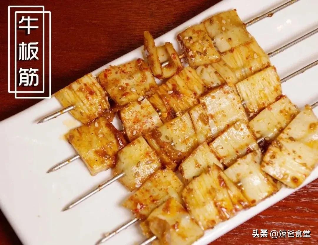牛板筋,是指牛背部两块连接全身运动肌肉的主大筋。因其质地坚硬、不易烹制,以前都是弃之不用的。但聪明的国人把它加工后用在了烧烤中,口感柔韧醇香,而且越嚼越香很快风靡全国。板筋特有的纤维组织,口感异常美妙,入口耐嚼,是烧烤里不可多得的好食材,受到很多人的喜爱。