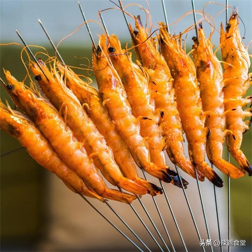 烤大虾几乎每个人都爱吃,也算是烧烤中比较高端的食材,尤其是比较珍贵的大海虾。烧烤用的虾首选海虾,例如黑虎虾、竹节虾、对虾、大青虾等,虾肉质紧实弹牙,鲜美无比。还有一种虾非常适合烧烤,那就是蛎虾,学名“鹰爪虾”,这种虾只有海捕野生,虽然个头不大,但是烤出来异常鲜美,尤其是虾头和虾皮可以直接食用,非常酥脆。