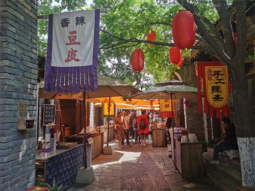 左侧许愿亭和感应池。右侧前行就是太行小吃街了。一店一品,原汁原味,价钱不贵。