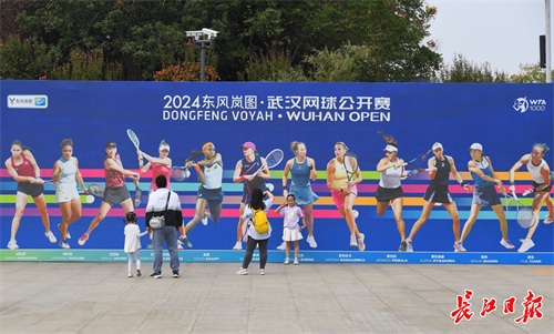 10月6日,市民在武网展板前驻足留影。 长江日报记者 高勇 摄