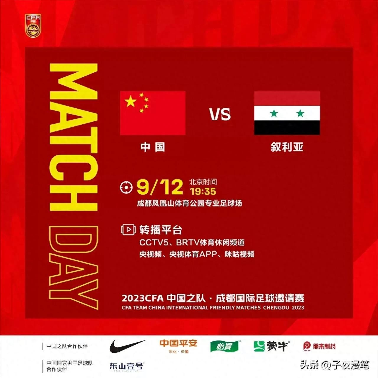今晚19时35分,中国男足将在成都凤凰山足球场迎来2023CFA中国之队~成都国际足球邀请赛第二场比赛,又一次迎战近年来的“苦主”叙利亚队。