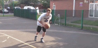 ① 手要吸住球,转身时球贴近身体,转身后同时换手