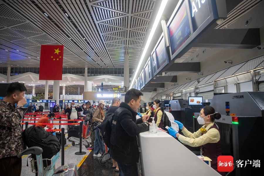 前往泰国曼谷的旅客办理值机。记者 刘洋 摄